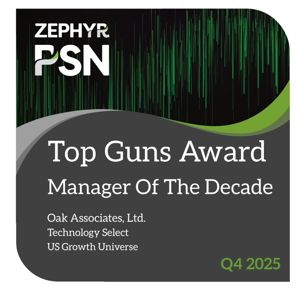 “Being named a PSN Top Guns Manager of the Decade is a tremendous honor that validates our investment team’s disciplined approach. We’re proud that our long-term focus on identifying innovative market leaders and maintaining a consistent approach has delivered strong results for our clients,” said Oak Associates’ Portfolio Manager, Jeff Travis.